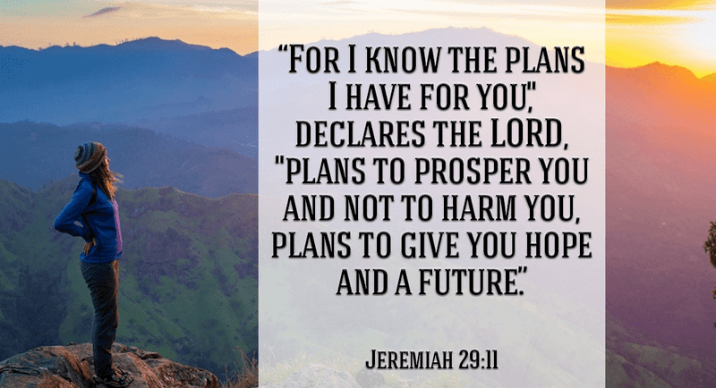 “For I know the plans I have for you,” declares the Lord, “plans to prosper you and not to harm you, plans to give you hope and a future.”